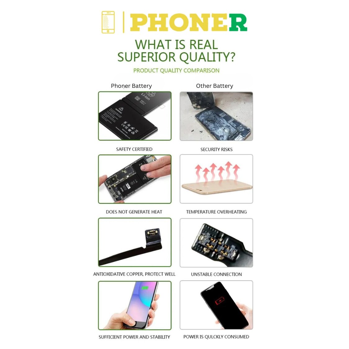 Our battery is specifically crafted for the iPhone X, ensuring a perfect fit and seamless integration with your device. Trust in a product tailored to meet the unique power requirements of your iPhone X.
