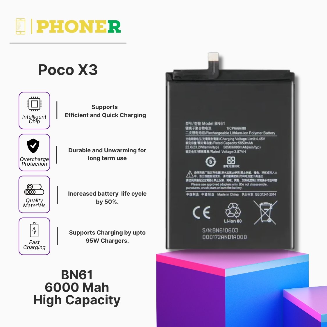 When you purchase the Mobile Battery for Poco X3 BN61 from phoner.in, you are guaranteed a genuine, high-quality product that ensures the best performance for your device.