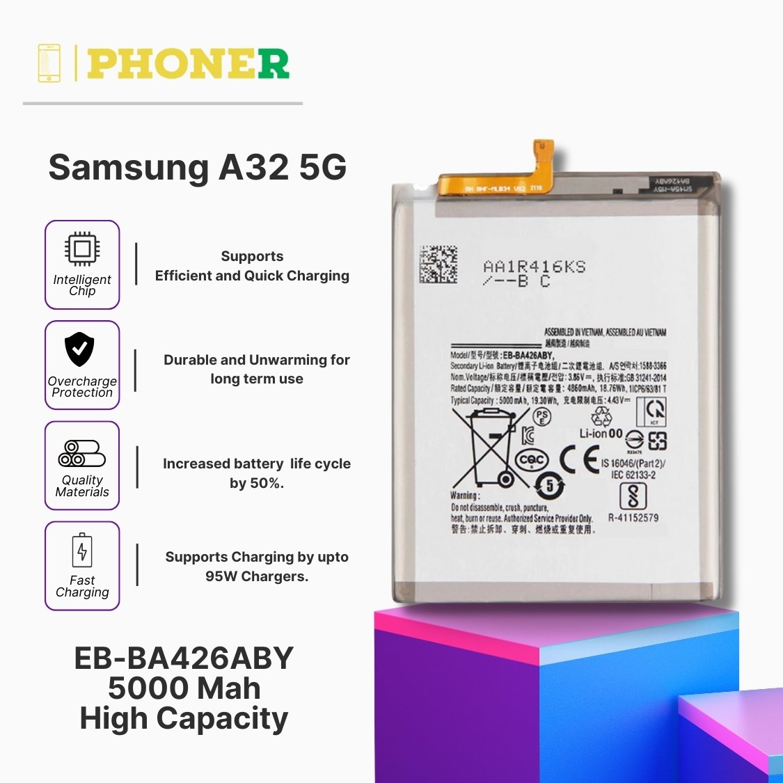 Ready to give your Samsung Galaxy A32 5G the upgrade it deserves? Order our Mobile Battery exclusively on phoner.in and experience the difference a reliable battery can make. With a 6-month guarantee, advanced features, and the trust of phoner.in, you’re not just buying a battery – you’re investing in the continued excellence of your device.