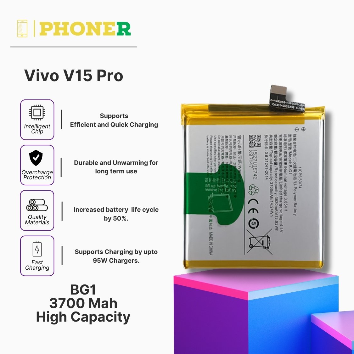 At phoner.in, where this product will be listed for sale, we aim to provide not just a product but a solution that transforms your Mobile Battery For Vivo V15 Pro BG1 experience. Explore more, enhance your Vivo V15 Pro, and embark on a mobile journey where power meets reliability.