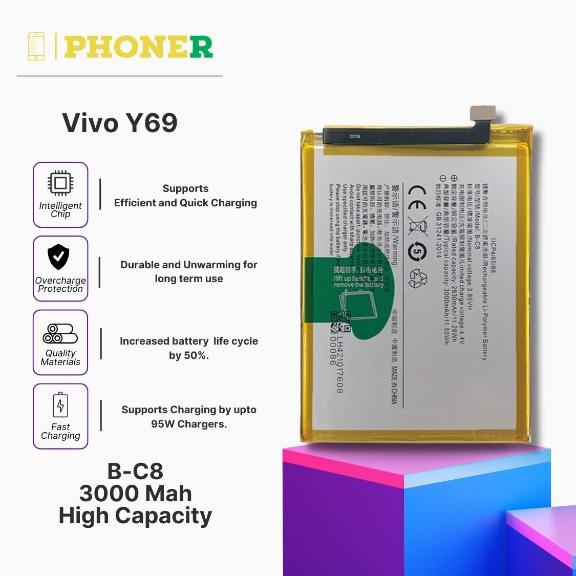 At phoner.in, where this product will be listed for sale, we aim to provide not just a product but a solution that transforms your Vivo Y69 experience. Explore more, enhance your Vivo Y69, and embark on a mobile journey where power meets reliability. Upgrade with the BC8 Mobile Battery – because it’s not just a battery; it’s a powerhouse of possibilities!