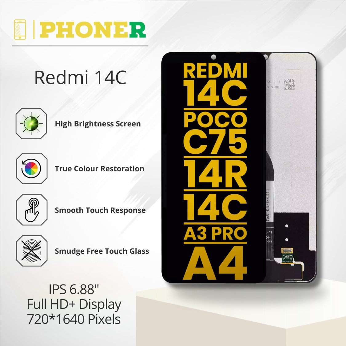 If you compare the Redmi 14C Original Display Price in the market, you will notice that Phoner.in offers significant savings. Instead of paying a heavy amount at the service centre, you can buy a near-original quality screen at a fraction of the cost. This makes it the perfect balance between price and quality.