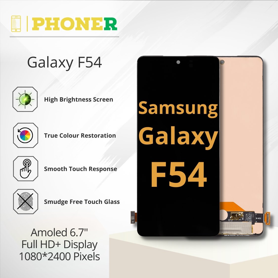 Order your Samsung F54 Display from Phoner.in today and restore your phone to its original condition. Enjoy fast delivery, affordable prices, and a 3-day warranty to test the product.