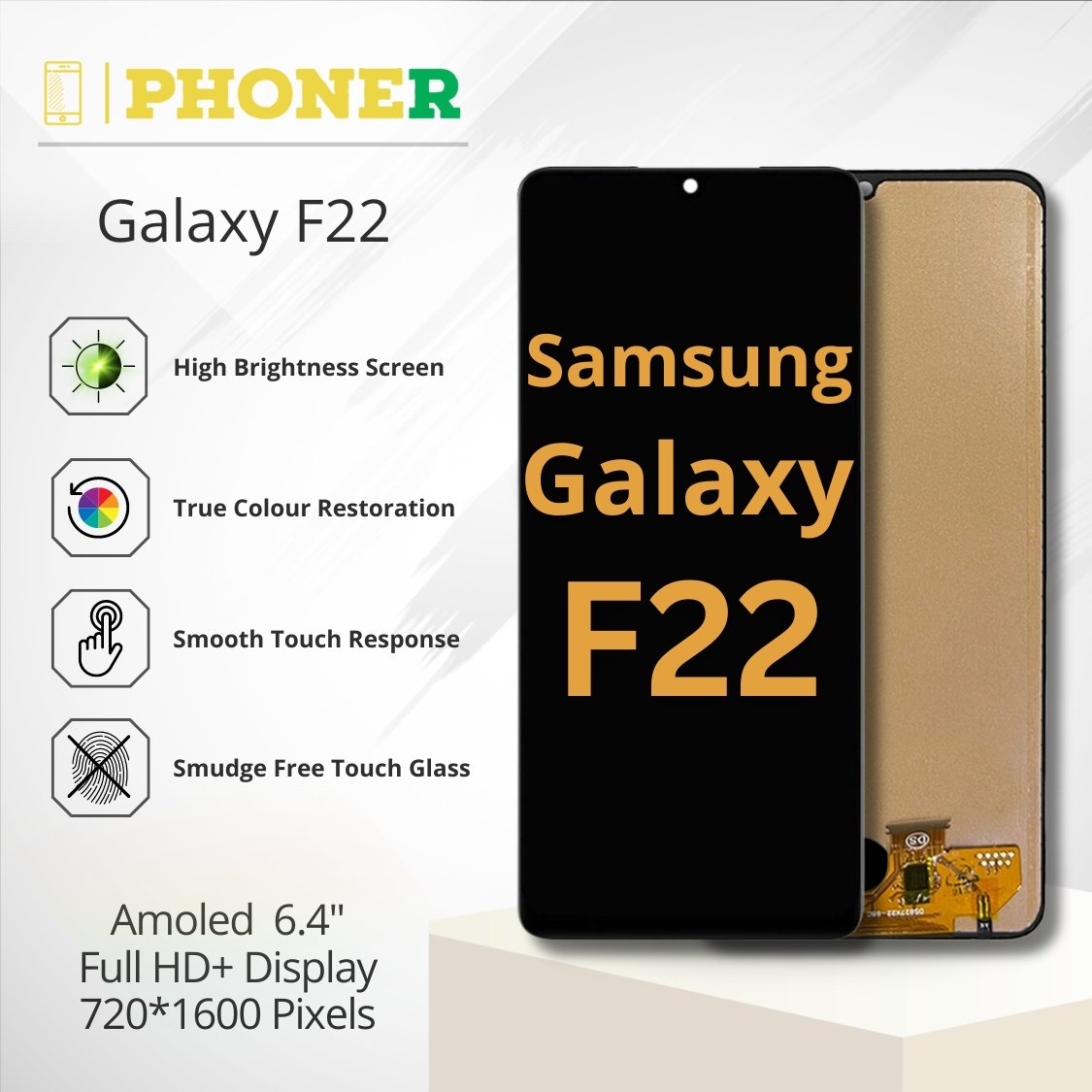 Power on your Samsung Galaxy F22 and marvel at the enhanced display quality brought to you by the new Lcd Display Folder, available exclusively on Phoner.in.